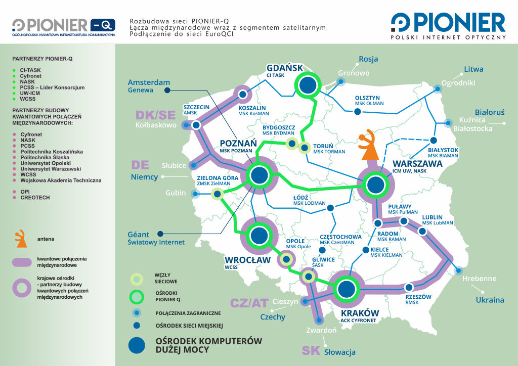 – do Niemiec i Czech QUANT-GPICz (w tym połączenie satelitarne QKD).