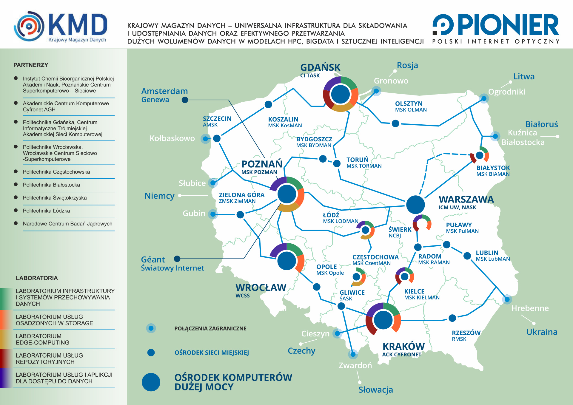 Piotr Sąsiedzki (P.S.): – To ponad 20 lat temu. Czas bardzo szybko leci. Dysponowaliśmy już wtedy nowoczesnymi sieciami światłowodowymi w skali miejskiej czy aglomeracyjnej i oczywiste było, że sieć krajowa potrzebuje przepustowości co najmniej równorzędnych. Realnie patrząc na ówczesny stan krajowej infrastruktury, trudno było nie dojść do wniosku, że jedyne racjonalne rozwiązanie pozwalające uzyskać i utrzymać wydajną sieć krajową łączącą docelowo wszystkie tzw. miejskie sieci komputerowe (MSK) to własna infrastruktura. Jednakże wcale nie oznacza to, że pomysł zbudowania własnej sieci i to jeszcze opartej o własną infrastrukturę nie był wówczas odbierany jako rewolucyjny, wręcz szalony. Oczywiste dla nas było, że budowa sieci krajowej (pierwotnie nazwanej OSO – Ogólnopolska Sieć Optyczna) nie będzie zwykłym powtórzeniem, tylko w większej skali, dotychczasowych realizacji w zakresie budowy Miejskich Sieci Komputerowych. Nie tylko mamy tu do czynienia z innego rodzaju techniką transmisyjną (większe odległości), ale również pojawiają się zagadnienia prawno-własnościowe. Prowadzenie kabli, zarówno w ziemi, jak i podwieszonych np. na infrastrukturze energetycznej wymaga uzyskania stosownych zgód (tzw. prawa drogi). Przeprowadzenie stosownych procedur jest zazwyczaj bardzo czasochłonne, jak i kosztowne. W tym zakresie nasze doświadczenia były bardzo ograniczone. Sama budowa rozległych odległościowo instalacji również wymaga zupełnie innego zarządzania. Środki jakie mieliśmy do dyspozycji w zasadzie nie umożliwiały samodzielnego wybudowania sieci krajowej. Barierę tę pokonano wykorzystując fakt, że w ówczesnym czasie kilka firm telekomunikacyjnych rozpoczynało planowanie lub realizację swoich inwestycji. Pierwszą, z którą współpracowaliśmy było Bankowe Przedsiębiorstwo Telekomunikacyjne Telbank, które rozpoczynało inwestycję na podobnych do wymaganych przez środowisko naukowe relacjach i zgodziło się zmodyfikować swoje plany tak, by duża część tras mogła być wykorzystana wspólnie. Współpraca ze służbami firmy Telbank pozwoliła nam nabrać doświadczenia w dalszych relacjach z kolejnymi operatorami. Muszę podkreślić, że ze strony służb firmy Telbank była to bardzo otwarta i konstruktywna współpraca. Jesteśmy im wdzięczni za wiele praktycznych informacji o potencjalnych problemach przy projektowaniu i realizacji dalekosiężnych linii światłowodowych.